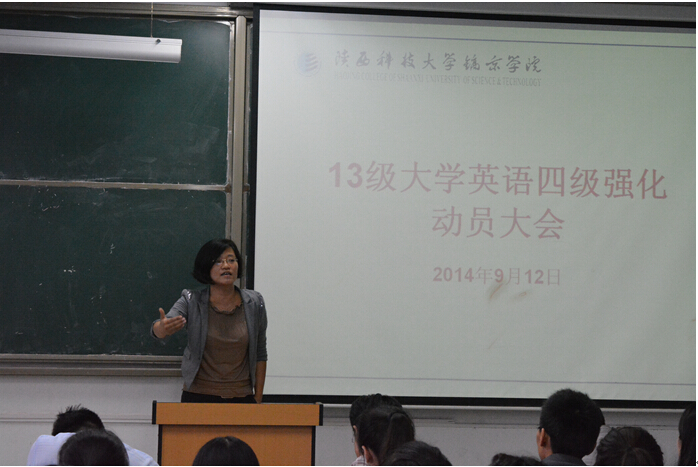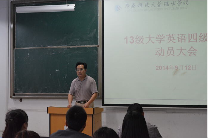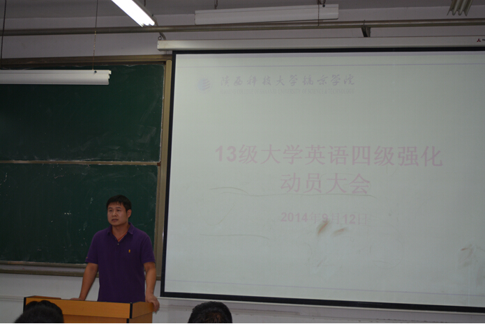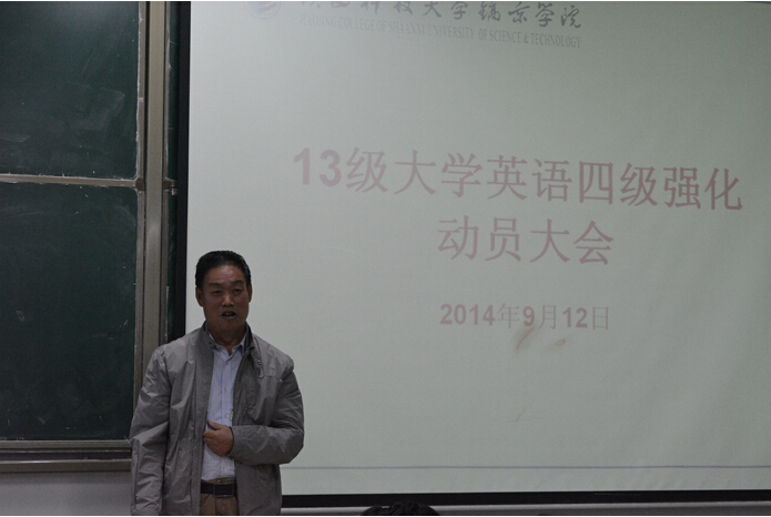 副院长郭国法教授首先强调了四级考试的重要性,同时,郭老师还分析这次考试的一些具体数据,指出有164个宿舍全部通过了四级考试,宿舍文化在班级建设中的重要性功不可没。郭老师还对班主任和英语教师提出了更高的要求,指出班主任要身先士卒,率先垂范,英语教师要认真备课,严格要求。通过做好13级的英语教学和四级强化,郭老师提出了13级四级通过率要达到88%的更高目标,并从时间安排上做出了具体部署。
